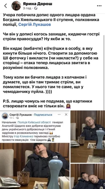 По словам военных и экспертов (Ярина Дорош, Елена Бурцева), в распространенных материалах использовались сгенерированные или смонтированные с помощью ИИ изображения и манипулятивные формулировки, что может свидетельствовать об информационной атаке на Щадило и полицию.